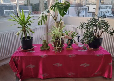 The Temple of Happiness is a sacred space. Everything here – the floor, the cushions, the tea, the instruments, the fabrics and the altar – is offered in trust and gratitude.
