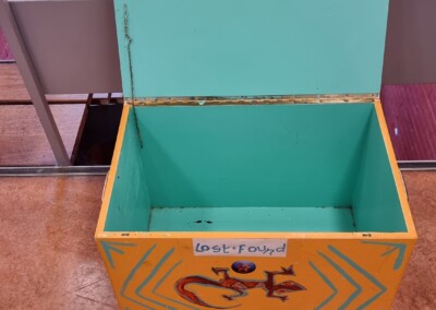 • Lost & found items: yellow box in the hallway.
